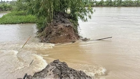 Sáng 6/11, một đoạn đê bao ở cồn Sơn, phường Bình Thủy, thành phố Cần Thơ đã bị vỡ khi triều cường lên cao vượt mốc lịch sử, nước từ sông Hậu tràn vào gây ngập sâu, ảnh hưởng nhiều nhà dân.