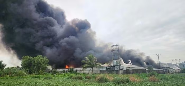 Cháy lớn thiêu rụi nhà xưởng công ty giày da