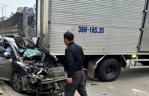 Xe tải đầu kéo và xe khách giường nằm tông vào nhau trên cao tốc Nghi Sơn - Diễn Châu, kéo theo sự va chạm với chiếc ô tô con phía sau; cả 3 xe đều hỏng nặng.