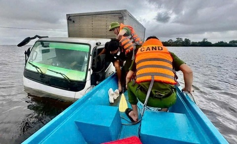 Tài xế xe tải "liều mạng" băng qua khu vực đã được cảnh báo nguy hiểm dẫn đến xe bị chết máy, mắc kẹt giữa dòng nước lũ