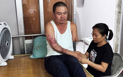 Cựu quân nhân Nguyễn Trọng Dũng ở xóm 3, xã Phúc Lợi, huyện Hưng Nguyên, tỉnh Nghệ An đang nằm trong căn lán tạm bợ, thấy có khách vào thăm, anh nén cơn đau để ngồi dậy tiếp đón...