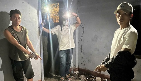 Nhóm thanh niên chui vào căn nhà hoang bên trong khuôn viên một ngôi chùa để sử dụng trái phép chất ma túy thì Công an ập vào bắt quả tang...