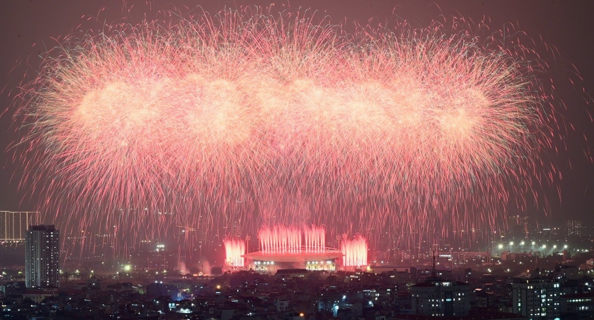 Biển người háo hức xem pháo hoa mừng thành công Đại hội XIV của Đảng
