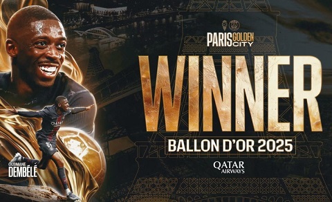 Ousmane Dembele được xướng tên với tư cách người chiến thắng danh hiệu Quả bóng vàng 2025 tại lễ trao giải rạng sáng 23-9 tại Nhà hát Châtelet ở Paris.