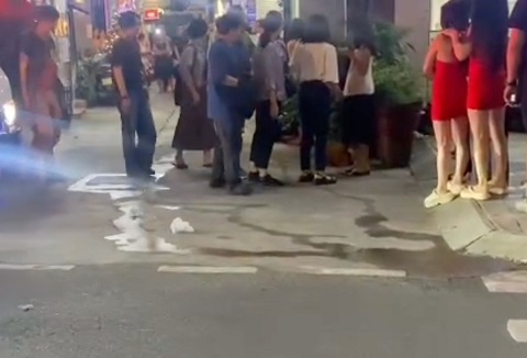 Từ tiếng hô hoán trong tiệm spa, người dân chạy đến thì thấy nhiều người đang sơ cứu cho một người đàn ông.
