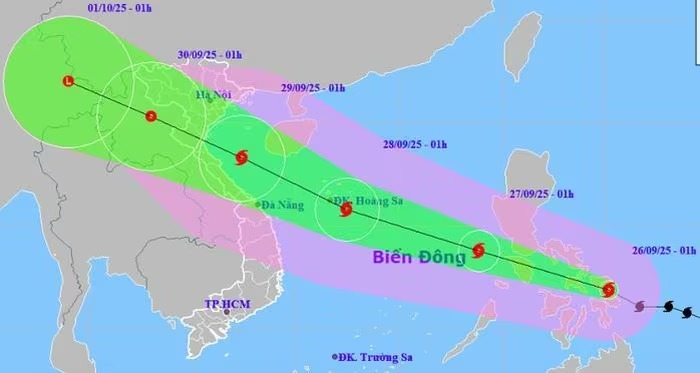Dự báo khoảng đêm 26-9, bão Bualoi sẽ đi vào vùng biển phía Đông khu vực giữa Biển Đông, trở thành cơn bão số 10 năm 2025.