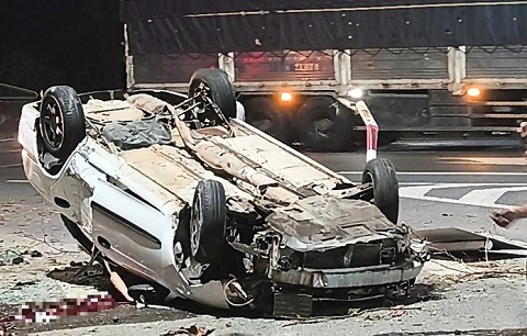 Giữa đêm khuya, xe ô tô bất ngờ mất lái, tông vào cột biển báo trên Quốc lộ 1 khiến xe lật ngửa, tài xế tử vong