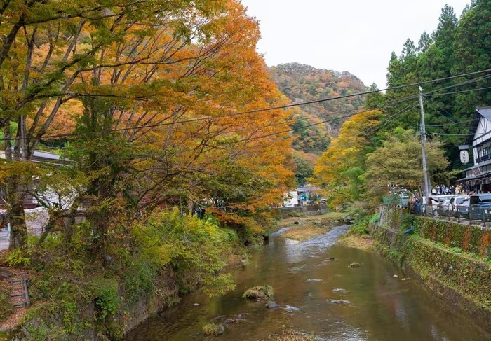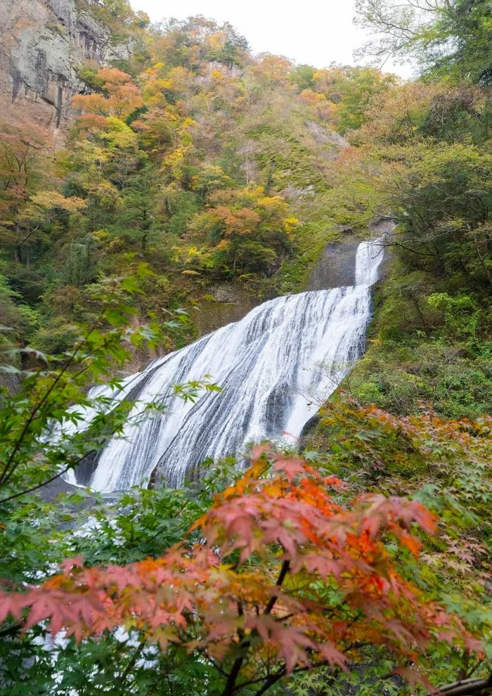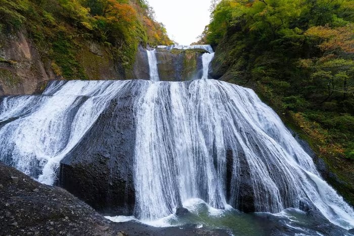 Khu vực xung quanh thác Fukurora rực rỡ sắc vàng đỏ của mùa Thu. (Ảnh: Xuân Giao/TTXVN) |
