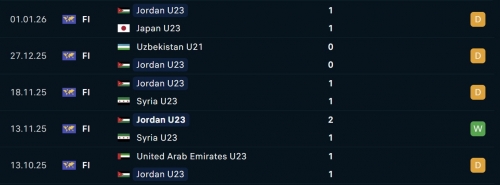 Phong độ 5 trận đấu gần nhất của U23 Jordan