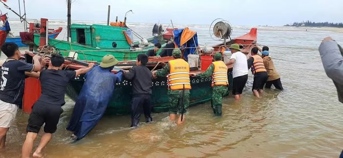 Đến 18h cùng ngày, thuyền thúng đã được các lực lượng kéo vào bờ.