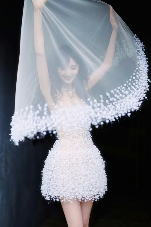 Bộ váy được tạo nên từ kỹ thuật thủ công tinh xảo, với hơn 3.200 bông hoa organza nhỏ nhắn được đính kết cầu kỳ, ôm trọn đường nét cơ thể, tôn lên vẻ đẹp thanh thoát và ngọt ngào đặc trưng của nữ diễn viên. |