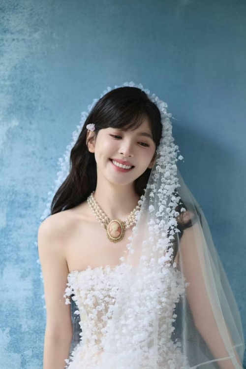 Để hoàn thiện vẻ ngoài cô dâu, Chương Nhược Nam khéo léo kết hợp chiếc váy với khăn voan cài đầu có chi tiết hoa li ti đồng điệu, cùng với chuỗi ngọc trai cổ điển có mặt đá cameo tinh tế, tăng thêm vẻ quý phái, lãng mạn. |