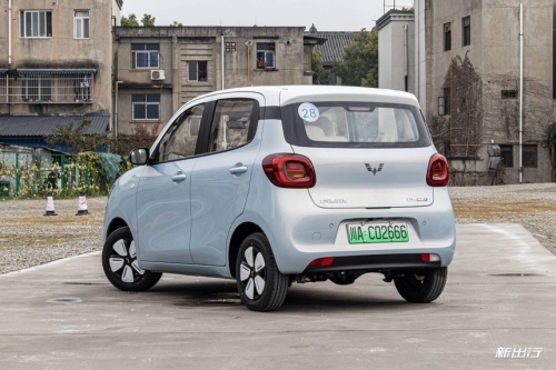 Đuôi xe cũng có đèn hậu hình tròn, tạo ra tính nhất quán trong thiết kế. Đây là sự khác biệt so với các phiên bản Wuling Hongguang Mini EV hiện tại.